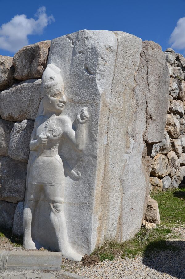 Как и хурриты, хетты поклонялись богу грома — Тешубу (Тишуб-Тарку). Они изображались с перунами в одной руке и с двойным топором — в другой, с бородой, в египетском переднике и головном уборе, вроде египетской белой короны — этот культ известен по барельефам.