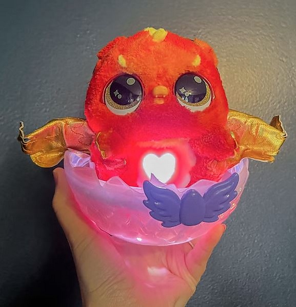 - До вылупления. Яйцо необходимо согреть, если его немного потрясти, детёныш запоёт песенку и постучит изнутри. Поглаживая нижнюю часть яйца, скорлупа начнёт трескаться. Чем чаще это делать, тем быстрее вылупляется детёныш. В целом процесс появления на свет может затянуться от получаса до суток, в зависимости от активности ребенка. При этом процедуру можно ускорить, воспользовавшись молоточком, идущим в комплекте[7].