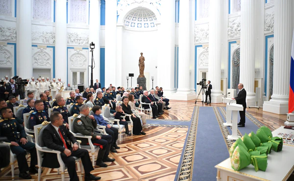 Вручение «Золотой Звезды» Героя России Алексею Хименко проходило в Екатерининском зале Большого Кремлёвского дворца 2 августа 2023 года[1].