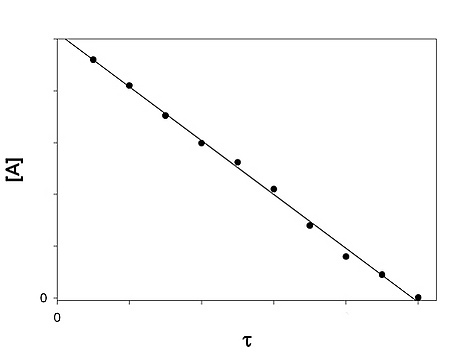 Скорость реакции нулевого порядка постоянна во времени и не зависит от концентраций реагирующих веществ. Нулевой порядок характерен, например, для гетерогенных реакций в том случае, если скорость диффузии реагентов к поверхности раздела фаз меньше скорости их химического превращения.