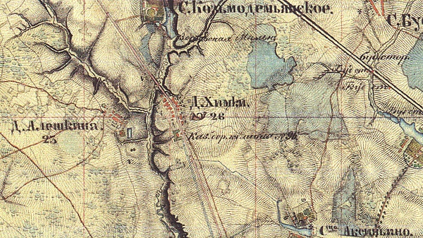 Существовал стан (остановка) Химка на тракте Санкт-Петербург — Москва (714 вёрст от СПб. и 14 от М.[8].