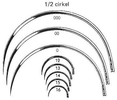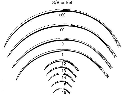 Степень изогнутости иглы определяется в долях окружности (пропорционально 1/8). Наиболее часто используются иглы на 1/2 и на 3/8.