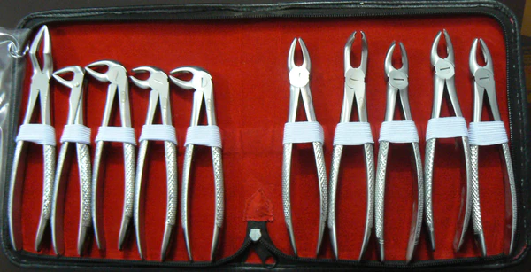 - стоматологический (стоматологические щипцы, стоматологическая кюретка, элеватор стоматологический, скальпель, зажим, ножницы хирургические, хирургический пинцет, хирургическая игла, хирургический шовный материал)