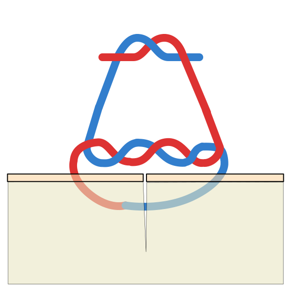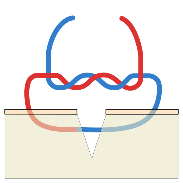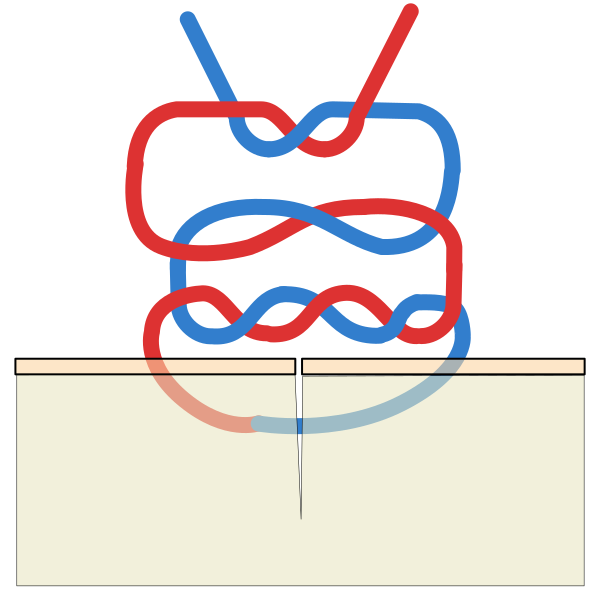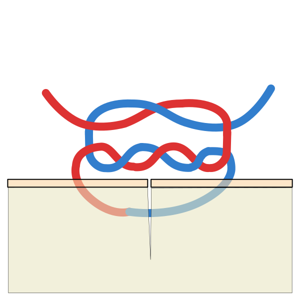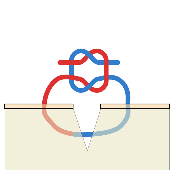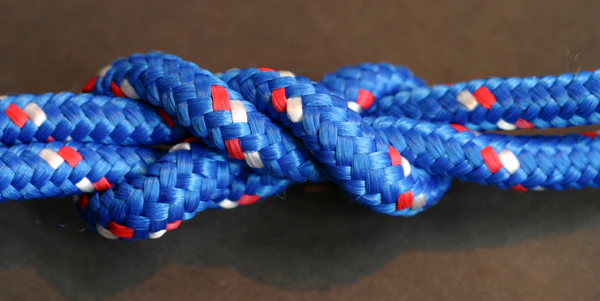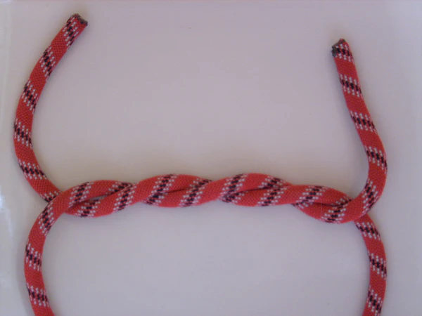 Хирургический узел, для наглядности, завязанный альпинистской верёвкой: