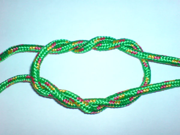 - Сделать 2 полуузла верёвками (как при завязывании двойного простого узла)