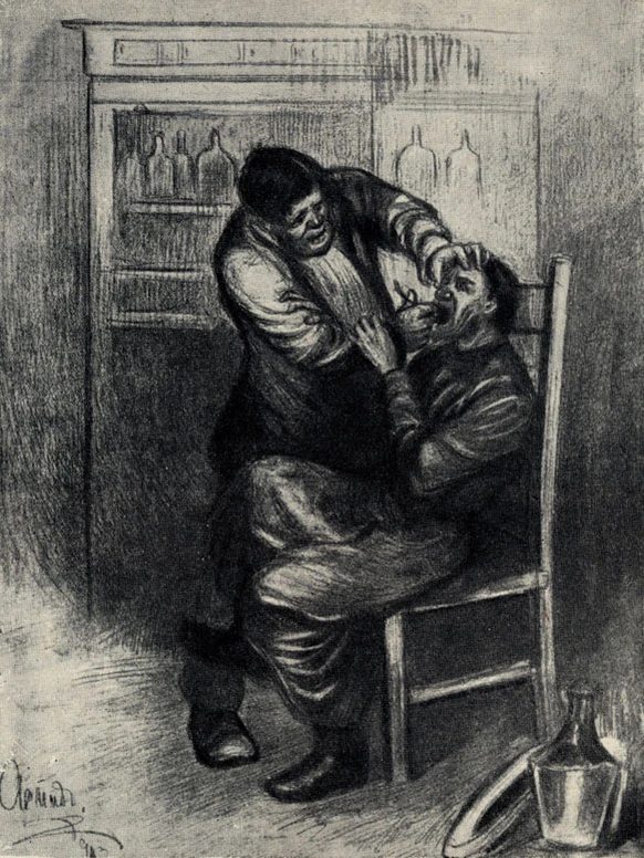 Место действия — земская больница. Доктор уехал жениться, и приём пациентов ведёт фельдшер Сергей Кузьмич Курятин. К нему приходит дьячок Ефим Михеич Вонмигласов с мучительной зубной болью. Осмотрев пациента, Курятин решает удалить зуб. Однако у фельдшера нет достаточного опыта и навыков для проведения такой процедуры. Под крики Вонмигласова он длительное время пытается вырвать больной зуб и в итоге ломает его.