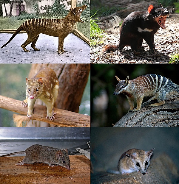 Домен: Царство: Подцарство: Без ранга: Без ранга: Тип: Подтип: Инфратип: Надкласс: Клада: Клада: Класс: Подкласс: Клада: Инфракласс: Надотряд: Клада: Отряд: Хищные сумчатые |