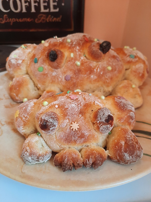 Когда я был маленьким, мы жили в районе Мишн в Сан-Франциско. Там была мексиканская пекарня, в которой пекли красивые буханки хлеба в форме крокодилов. Недавно мы обсуждали это с женой, и нам пришла в голову идея попробовать самим печь хлеб в форме животных. Поскольку моя жена ведёт популярный сайт о лягушках, первым животным, которое пришло нам в голову, была лягушка[3].
