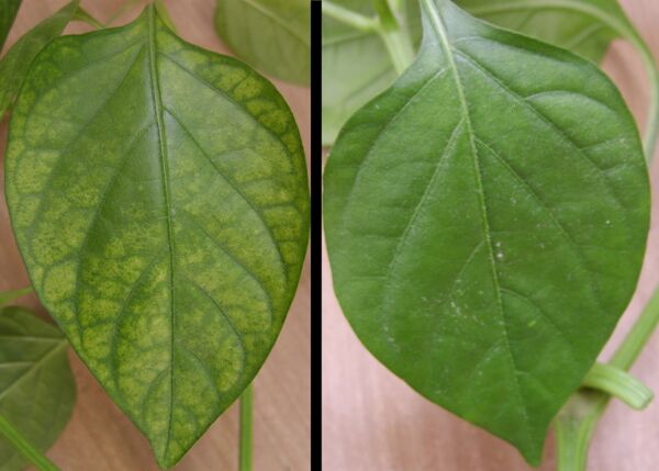 | Описание медиа | На листьях признаки межжилкового хлороза. Это вызвано неспособностью растения вырабатывать достаточное количество хлорофилла, вероятно, из-за дефицита питательных веществ. |