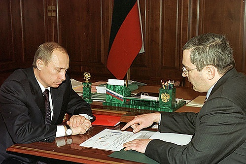 В марте 2003 года Ходорковский в качестве предводителя «профсоюза олигархов» представил главе государства законопроект, который, в случае его принятия парламентом и подписания президентом, закреплял итоги приватизации и залоговых аукционов 1990-х годов, окончательно устанавливал невозможность их пересмотра, неотчуждаемость прав собственности. Как излагают содержание документа Станислав Белковский и Зыгарь, взамен владельцы ключевых предприятий России, которые они получили в ходе залоговых аукционов почти даром и которые в 2003 году стоили уже миллиарды долларов, обязывались выплатить государству компенсацию в общей сложности до 20 млрд долларов. Согласно идее Ходорковского, таким образом выгоду получали и «киты» большого бизнеса, чьи активы, получив законный статус неотчуждаемых, ещё многократно наращивали капитализацию и инвестиционную привлекательность, и государство, неожиданным способом пополняющее свой бюджет. Заинтересованность Ходорковского и Романа Абрамовича состояла также и в том, что они планировали как можно дороже продать долю своей будущей совместной нефтяной компании американским инвесторам. Премьер Касьянов, которого глава ЮКОСа также заинтересовал, поддержал идею, однако Путин, которому, якобы, передали две страницы подготовленной Ходорковским концепции, ознакомился с проектом и никак не отреагировал[22].