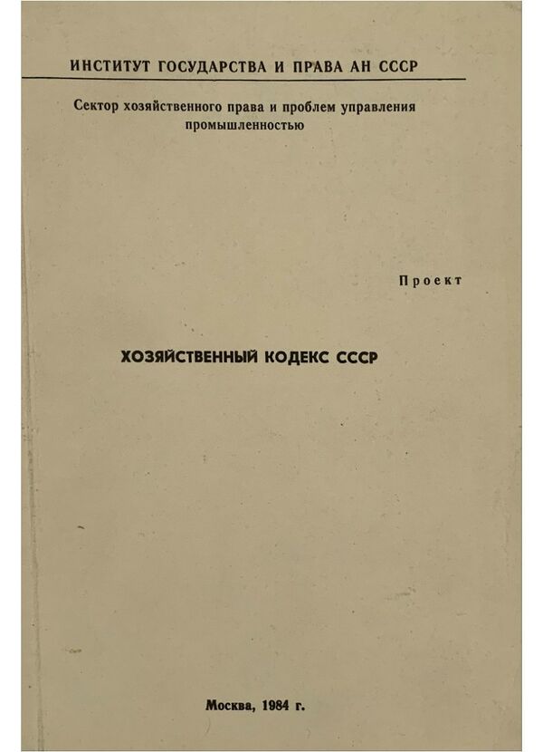 - Хозяйственный кодекс СССР (проект), Москва-1984;