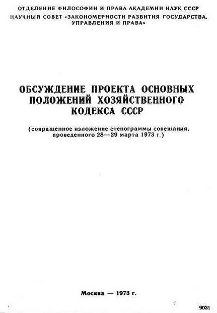 - Хозяйственный кодекс СССР (проект основных положений), Москва-1973;
