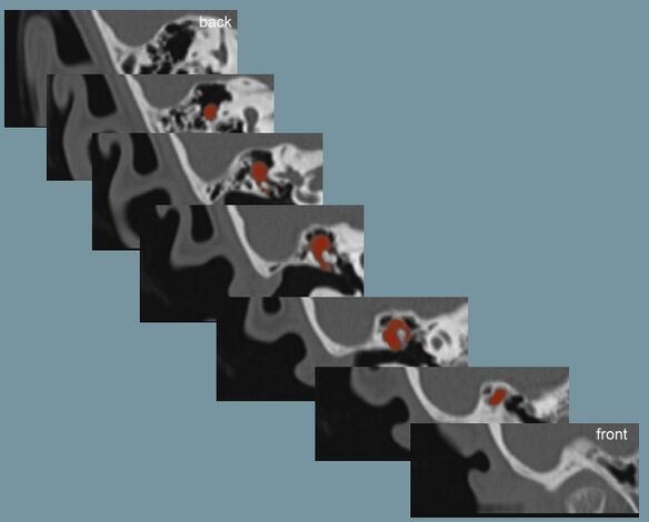 В конце девятнадцатого века Габерманн (L. Habermann) и Бецольд[4] (F. von Bezold) предположили, что развитие холестеатомы в ухе происходит за счёт прорастания эпидермиса слухового прохода через краевое перфоративное отверстие барабанной перепонки на фоне хронического эпитимпаноантрального среднего отита. Эта версия этиологии холестеатомы укрепилась как наиболее вероятная.