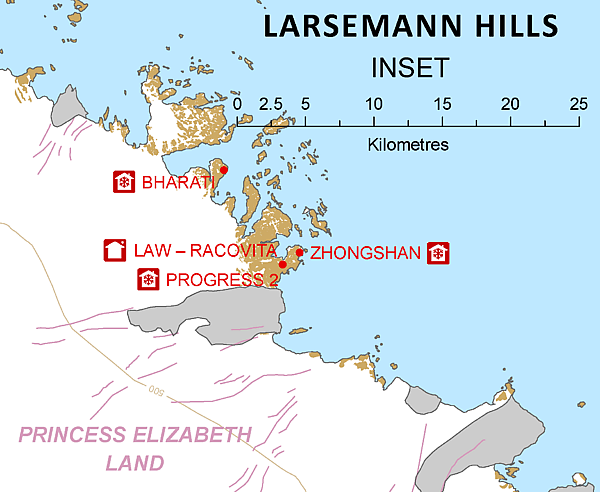 В районе Холмов Ларсеманна расположено несколько полярных станций: