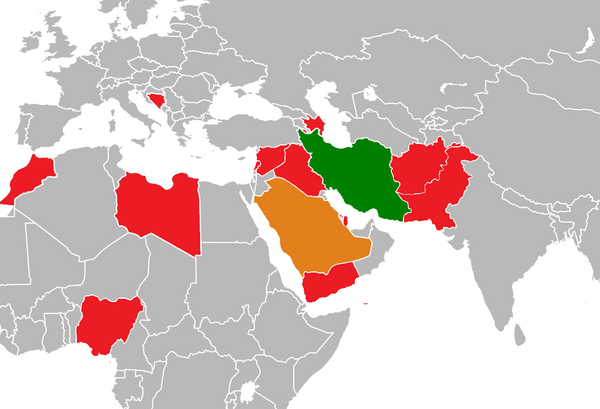 Саудовская Аравия считается главным арабским союзником США в исламском мире[32]. В свою очередь, после захвата американских заложников в Иране в 1979 году американо-иранские отношения резко ухудшились[33][34], а в 2002 году президент США Джордж Буш отнёс Иран вместе с Ираком и КНДР к «оси зла»[35]. Хотя отношения Тегерана и Вашингтона в 2015 году улучшились после заключения соглашения о «совместном всеобъемлющем плане действий» по иранской ядерной программе[36], Иран и США остались противниками[37]. СВПД же вскоре был разорван американской стороной.