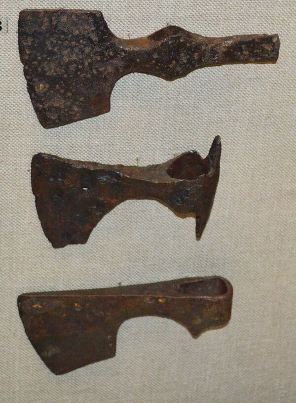 - Рабочие топоры, более тяжёлые и массивные, на войне, вероятно, применялись редко.