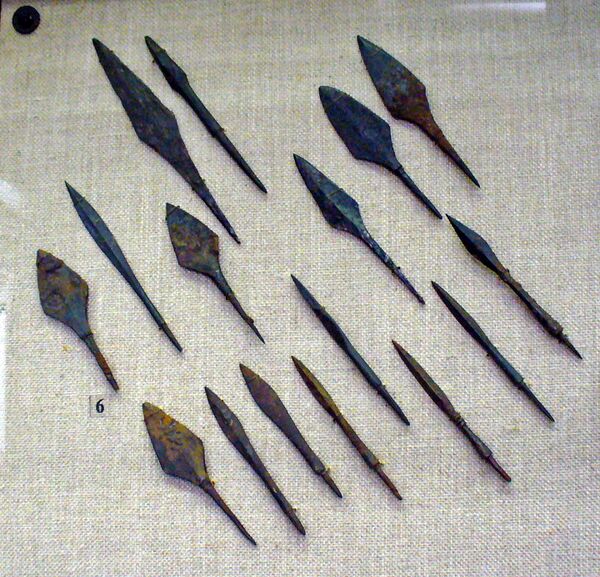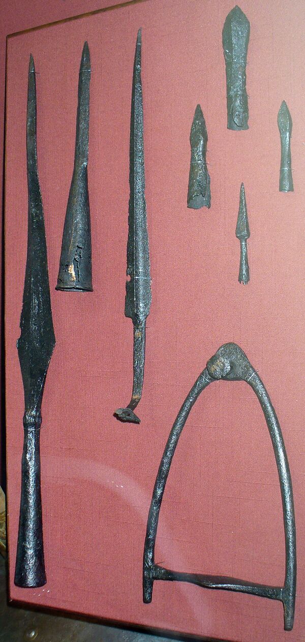 - Вытянуто-треугольный наконечник с черешком. Появляются около VI века, в XI выходят из употребления.