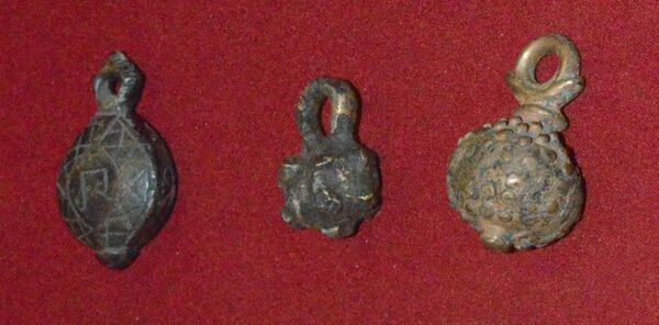 - Костяные грузы, обычно вырезанные из рога лося, были сферической или яйцевидной формы, массой 100—250 г. Они составляют около 28 % находок и бытуют до XIII века, но уже после XI встречаются редко.