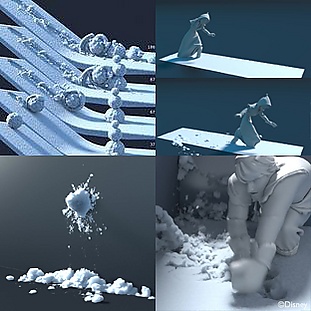 Студия также разработала несколько новых программ для генерирования реалистичных и правдоподобных кадров, а именно для создания глубокого снега и его взаимодействия с персонажами. Disney хотела создать универсальный инструмент, который позволит создать снежные эффекты, но не потребует переключения между разными методами. Как было упомянуто выше, несколько диснеевских художников и специалистов по спецэффектам посетили Вайоминг, где проводили опыты, связанные с хождением по глубокому снегу. Доктор Кеннет Либбрект, профессор из Калифорнийского технологического института, был приглашен прочитать лекции группе по спецэффектам, о том как сформировываются снег и лед, и почему каждая снежинка сама по себе уникальна. Пользуясь этими знаниями, группа создала генератор снежинок, который позволил создать 2000 разных форм снежинок для фильма.
