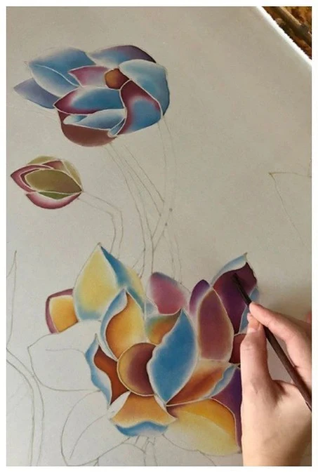 Холодный батик самый доступный и выразительный, вследствие чего широко применяется как при росписи изделий утилитарного назначения, так и при работе над авторскими панно[10].