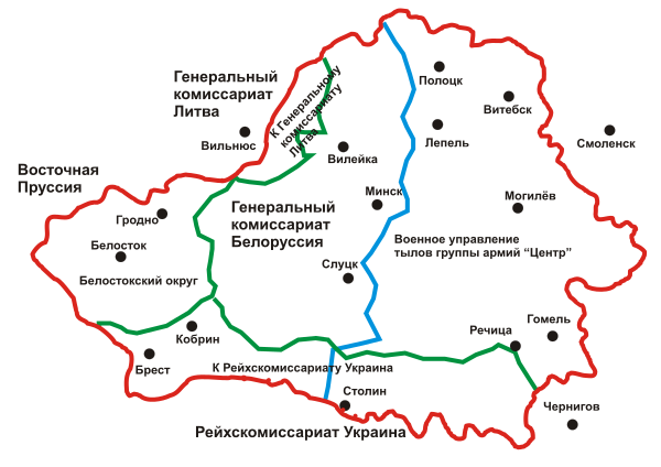 - Генеральный округ Белоруссия Рейхскомиссариата Остланд — около трети БССР.