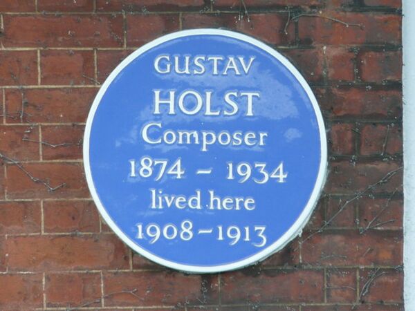 Существует ещё одна синяя табличка в Лондоне по адресу: 10 The Terrace, Barnes, Richmond, — она была установлена администрацией Ричмонд-парка[105] на жилом доме, где композитор Густав Теодор Холст проживал с 1908 по 1913 года. На ней отсутствует логотип «Английского наследия».