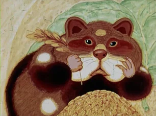 По лесу с надутыми щеками идёт хомяк, ни на кого не обращает внимания и даже не здоровается. Каждый, кто пытался поприветствовать его и завести разговор, в ответ получал только невежливое молчание. Такое поведение хомяка очень раздражало всех, и каждый стал называть его ленивым. А хомяк, никого не слушая, шёл к своей норке, придерживая щёки лапками. Придя домой, хомяк вывалил изо рта целую гору зёрен.