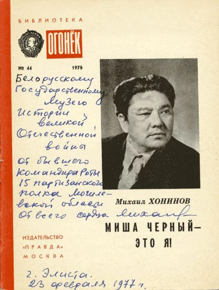 В Белоруссии Михаила Хонинова знали под боевым именем Миша Чёрный. Он обезвредил около трёхсот карателей и полицаев. За голову Михаила Чёрного оккупанты давали 10000 оккупационных марок[7][8]. Начинал как командир взвода, потом командовал ротой. Причём в подчинении калмыка была отдельно действующая рота в составе 300 человек. — Именно её немцы называли «дикой дивизией»: рота отражала по 8—10 атак в день в Хачинском лесу и всегда первой прорывалась из окружения, — говорит дочь партизана. — За голову Миши Чёрного немцы давали 10 тысяч оккупационных марок. Я только недавно узнала, что тогда значили в Беларуси эти деньги: в переводе это 100 тысяч советских рублей[6].