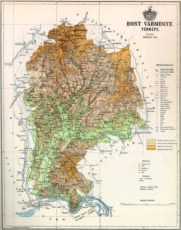 Столицами комитата были вначале замок Хонт вместе с Ипельским предместьем, затем не было постоянной столицы, и в конце концов с начала XIX века столицей стал город Шаги (по-венгерски: Ипольшаг). Издревле Хонт славился своими рудниками, где добывались золото, серебро, железо, медь, цинк, свинец, киноварь, мышьяковый колчедан, сера и горный хрусталь.