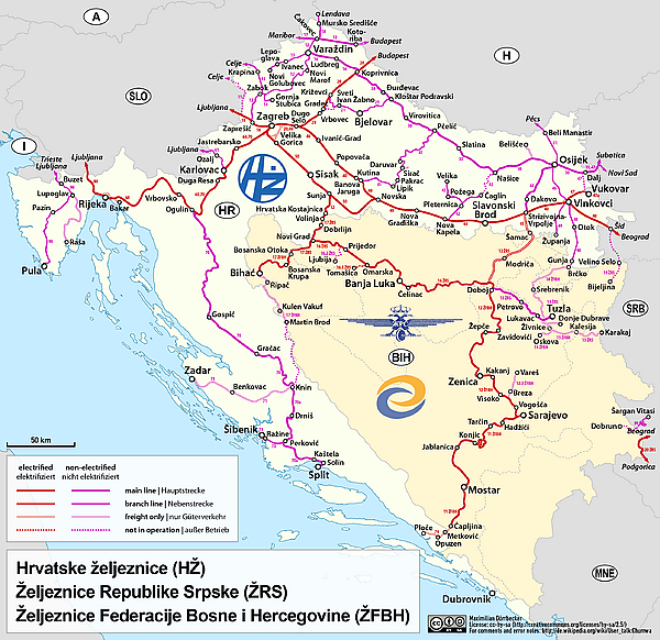 Есть некоторые проблемы железнодорожной сети, имеющие исторические причины. Когда Хорватия была частью Югославии, железнодорожная сеть была последовательно связана и управлялась Югославскими железными дорогами. После распада Югославии железнодорожное сообщение прервалось.