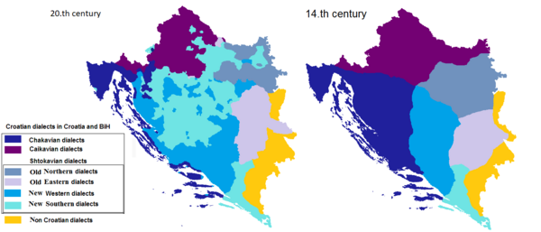 - западный (младоикавский) диалект (подавляющее большинство носителей — хорваты)[3];