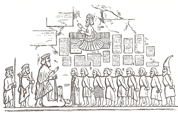 Первое упоминание хорезмийцев встречается в Бехистунской надписи (522—519 до н. э.) Дария I[15]. Там же находятся высеченные рельефы восточноиранских воинов, в числе которых есть и хорезмийский воин, рядом с согдийским, бактрийским и сакским воинами, свидетельствующие об участии хорезмийцев в военных походах правителей Ахеменидской державы[16].
