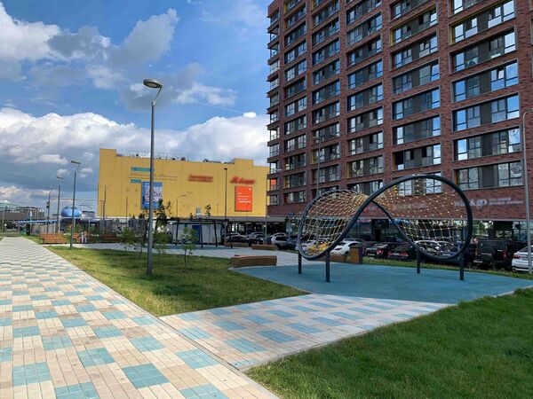 Изначально сквер планировалось обустроить в теме авиации – здесь предполагалось установить декоративные фигурки самолетов, памятные доски с именами известных авиаторов и тренажеры для имитации подготовки летчиков на детской площадке[33]. Кроме того, на территории пешеходной зоны должны были высадить высокие плотные кустарники для гнездования птиц, установить домики-кормушки и построить площадку для дрессировки животных. Эти планы не были реализованы.