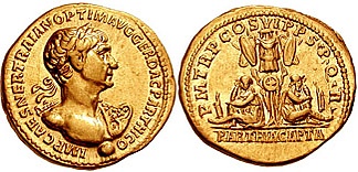 Чтобы противостоять успешным действиям Квиета на Среднем Евфрате, Хозрой отправил на помощь Санатруку большую парфянскую армию под командованием своего сына Партамаспата. Однако вскоре между этими двоюродными братьями возникли разногласия, слух о которых достиг ушей Траяна, увидевшего здесь возможность разжечь пламя раздоров, так часто оказывавших разрушительное воздействие на парфянскую военную стратегию. Император пригласил Партамаспата на секретную ночную встречу, и в результате Санатрук был разбит своим кузеном, а после погони схвачен и убит. Для того чтобы завершить дипломатическую победу, Траян созвал в Ктесифоне парфян (из проримской партии?) и римлян, провозгласил Партамаспата царём и возложил диадему на его голову. Это событие изображено на монетах с надписью REX PARTHIS DATUS («Царь, данный парфянам»)[23].