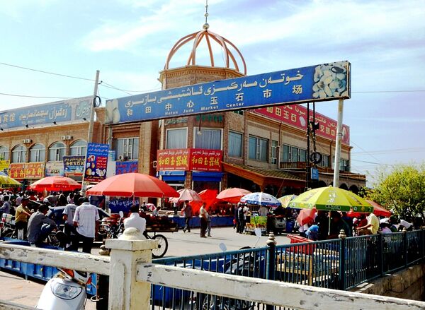 Хотанский оазис (называемый в старых китайских текстах 和阗) обозначал предел распространения китайских границ во времена империй Хань (в 73 году здесь побывали войска Бань Чао) и Тан (в 630-е гг. здесь была китайская пограничная застава). По преданию, ещё в V веке китайская царевна, выданная замуж за хотанского князя, тайком вывезла из Поднебесной в своей пышной причёске куколки тутового шелкопряда. Таким образом, Хотан стал первым центром шелководства за пределами Китая; именно отсюда секрет его производства просочился в Персию и Византию.