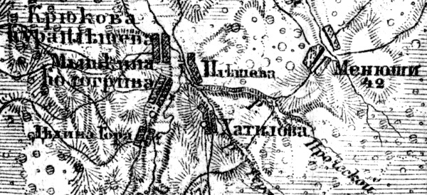 Деревня Хатилова из 20 дворов, отмечена на карте профессора С. С. Куторги 1852 года[5].