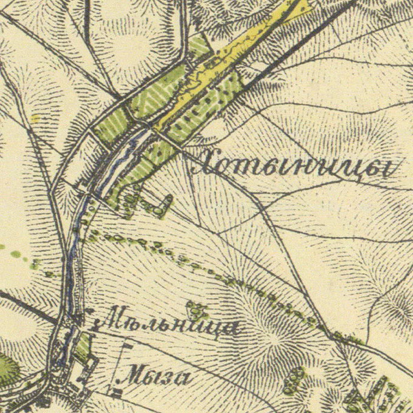 ХОТЫНИЦЫ — деревня принадлежит Санкт-Петербургскому почт-директору, число жителей по ревизии: 270 м. п., 330 ж. п.; В оной: мукомольная мельница. (1838 год)[9]