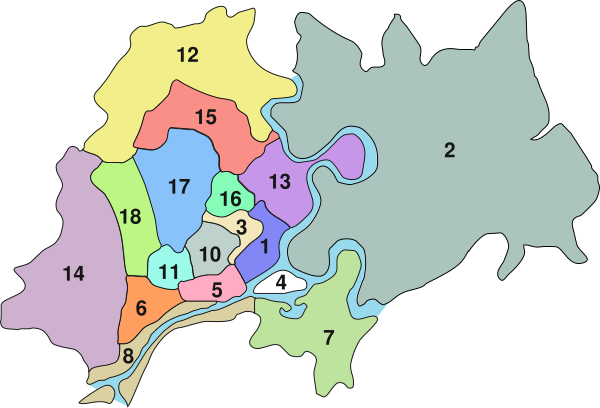 | 17 | Танбинь | Tân Bình | 425 136 | 19 324 | 430 436 | 19 565 | 1,25 | 22 |