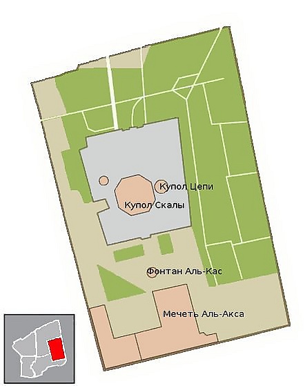 Наиболее священное место для иудаизма и третье по святости для ислама. На территории Храмовой горы находился Первый, а затем и Второй Иерусалимский Храм. Здесь же, согласно еврейской традиции, в будущем будет стоять Третий Храм. В настоящее время на территории Храмовой горы расположены мусульманские культовые сооружения — мечеть Аль-Акса и Купол Скалы.