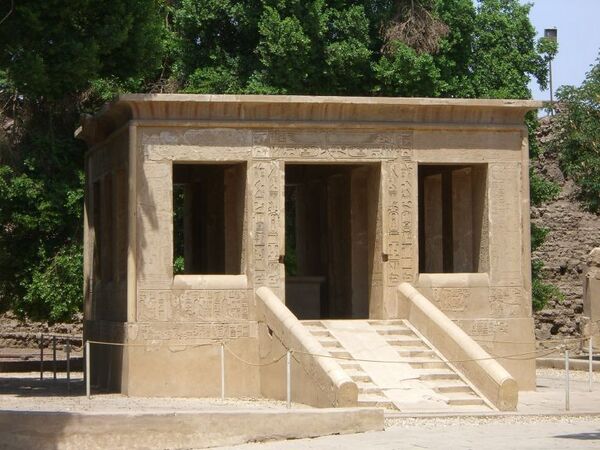 Здание из розового гранита, святилище барки Филиппа Арридея, в котором хранилась переносная барка Амона, стоит на месте предыдущего святилища Тутмоса III, построенного на месте часовни Хатшепсут — знаменитой Красной часовни в Музее под открытым небом[16].
