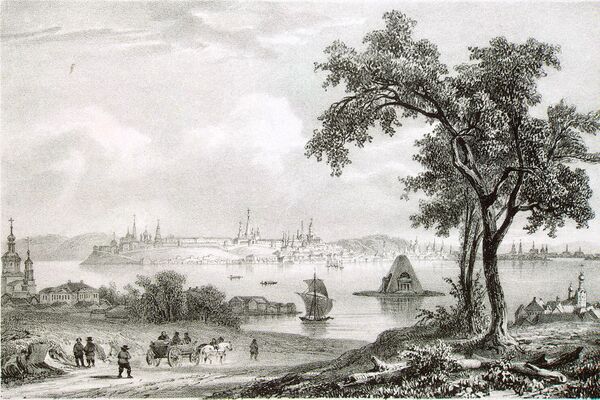 Увиденная с дамбы, Казань словно поднимается из глубин огромного озера. Открываясь взору со своим старым кремлём, которого никогда не достигали никакие пожары, и колокольнями своих шестидесяти двух церквей, она являет собою зрелище самое фантастичное.