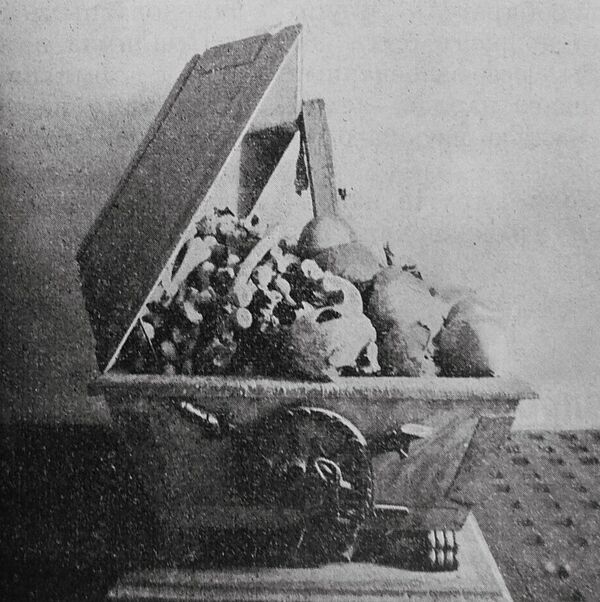 Первые попечители над памятником, купец I-й гильдии Л. Крупенников и П. Котелов, устроили в склепе богатый гроб, в котором были собраны кости воинов: