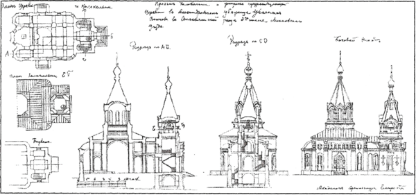 Шатровый одноапсидный храм на 350 человек был сооружён в традициях русской архитектуры XVII века[11]: его украшали килевидные кокошники, аркатурные пояски, ширинки, уступчатое обрамление окон и ниш, выложенные кирпичом кресты. Два шатра храма стояли на одной оси[12]. Церковь стала архитектурной доминантой комплекса зданий приюта, она была видна с Петербургского шоссе[7].