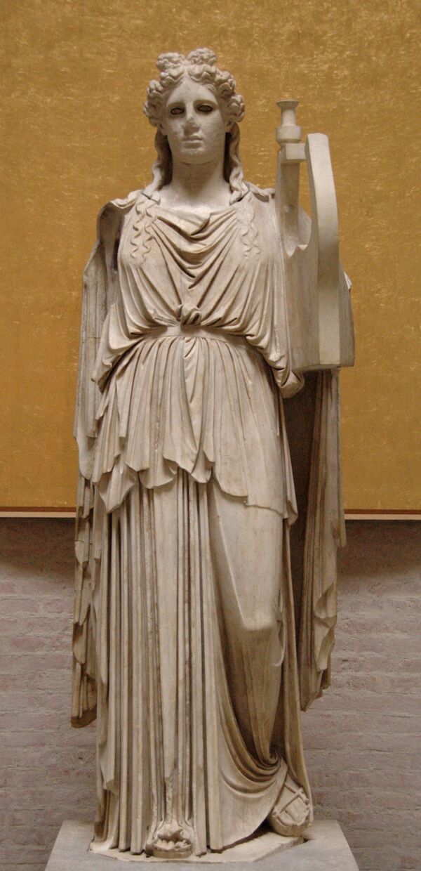 Октавиан Август, выстраивая основы собственной власти, создал храм общегосударственного культа, посвящённый богу-повелителю Муз; по-видимому, это должно было сделать святилище более значимым, чем Александрийский мусей. Формальным поводом для закладки храма была победа над Секстом Помпеем в 36 году до н. э. Далее храм был перезаложен в честь победы при Акции, и завершён три года спустя. Судя по эпиграфическим памятникам (Corpus Inscriptionum Latinarum I, 2, 331) храм был освящён 9 октября 28 года до н. э. Проперций, в оде на освящение храма (IV, 6. 11—60) говорил именно о победе над Антонием и Клеопатрой и последующем триумфе Августа[2]. После освящения храма в него из храма Юпитера Капитолийского были перенесены Сивиллины книги, и захоронены в золотом ларце под статуей Аполлона[3].