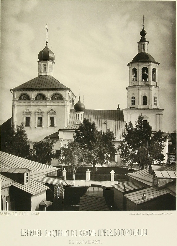 Храм Введения в Барашах расположен на углу Барашевского и Подсосенского переулков рядом с Покровкой. В XV веке эти земли принадлежали Спасо-Андроникову монастырю. В 1476 году они отошли Ивану III, предложившему за них монастырю землю за Яузой. С этого же времени на этом месте известна церковь, освященная во имя Ильи Пророка — Ильи под Сосною. Рядом с ней была расположена царская Ильинская слободка.