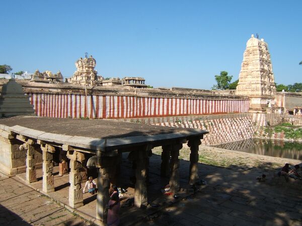 Меньшие по размеру восточные ворота ведут во внутренний двор с несколькими маленькими храмами. Вдоль террасы храма узким каналом протекает река Тунгабхадра. Её воды протекают через храмовую кухню и оттуда выходят наружу через внешний двор.[3]