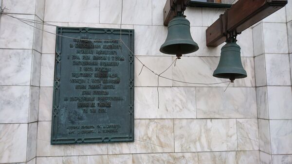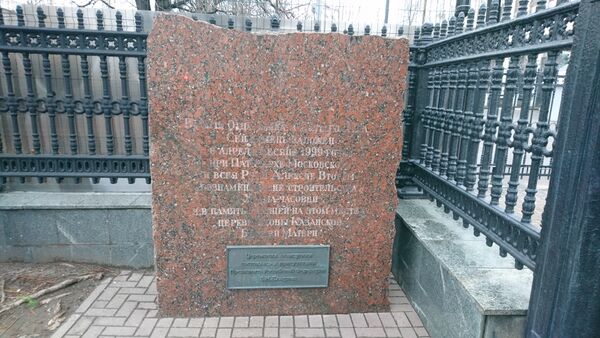 На мраморных внешних стенах укреплены памятные доски: одна из них повествует о том, что храм выстроен по благословению патриарха Алексия в память воинов, погибших при защите правопорядка, и на пожертвования благотворителей; другая доска напоминает о стоявшей здесь старой Казанской церкви[1][2].
