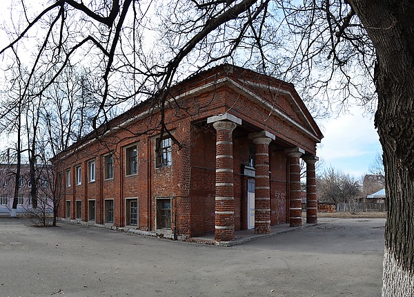 двухэтажное, кирпичное, прямоугольное в плане здание. Торцевая часть украшена четырёх колонным портиком, поддерживающим карниз несложного профиля, завершающийся треугольным фронтоном. Плоскости фасадов обработаны прямоугольными пилястрами. Прямоугольные окна обрамлены прямоугольными наличниками из кирпича. Вход в здание украшен двумя полуколоннами, несущими прямоугольный стилобат[5].