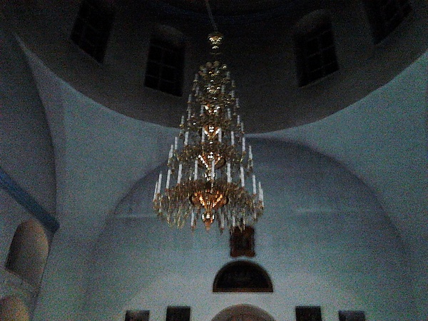 Минуя главный вход, сразу же попадаешь внутрь колокольни. Центральная часть колокольни внутри круглая и покоится на широком основании, которое включено в тело храма.