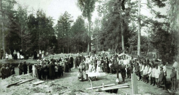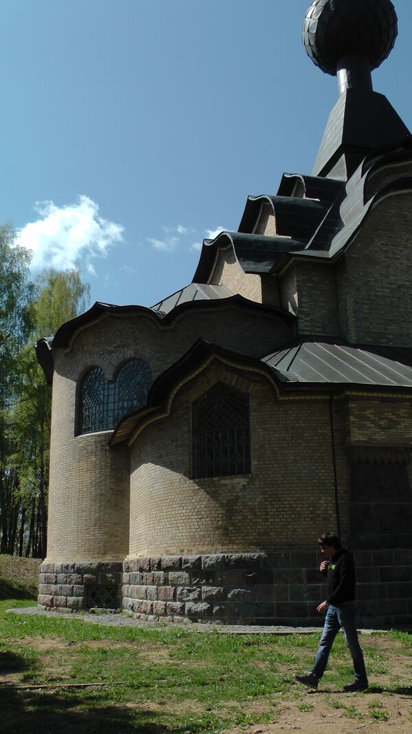 Когда я искала форму, создавая мой храм, я уже многое обдумала и глубоко прониклась русской стариной. Мне хотелось создать храм не из драгоценных материалов, а исключительно из местного камня, дерева, местными силами. Из моего путешествия по России мне стало вполне ясно, что храмы на нашем севере создались согласно с условиями и требованиями климата. Все наши крупные праздники бывают зимой, или ранней весной, или осенью. Для крестных ходов в эти торжественные дни наши храмы в древности строились с крытой папертью вокруг церкви.
